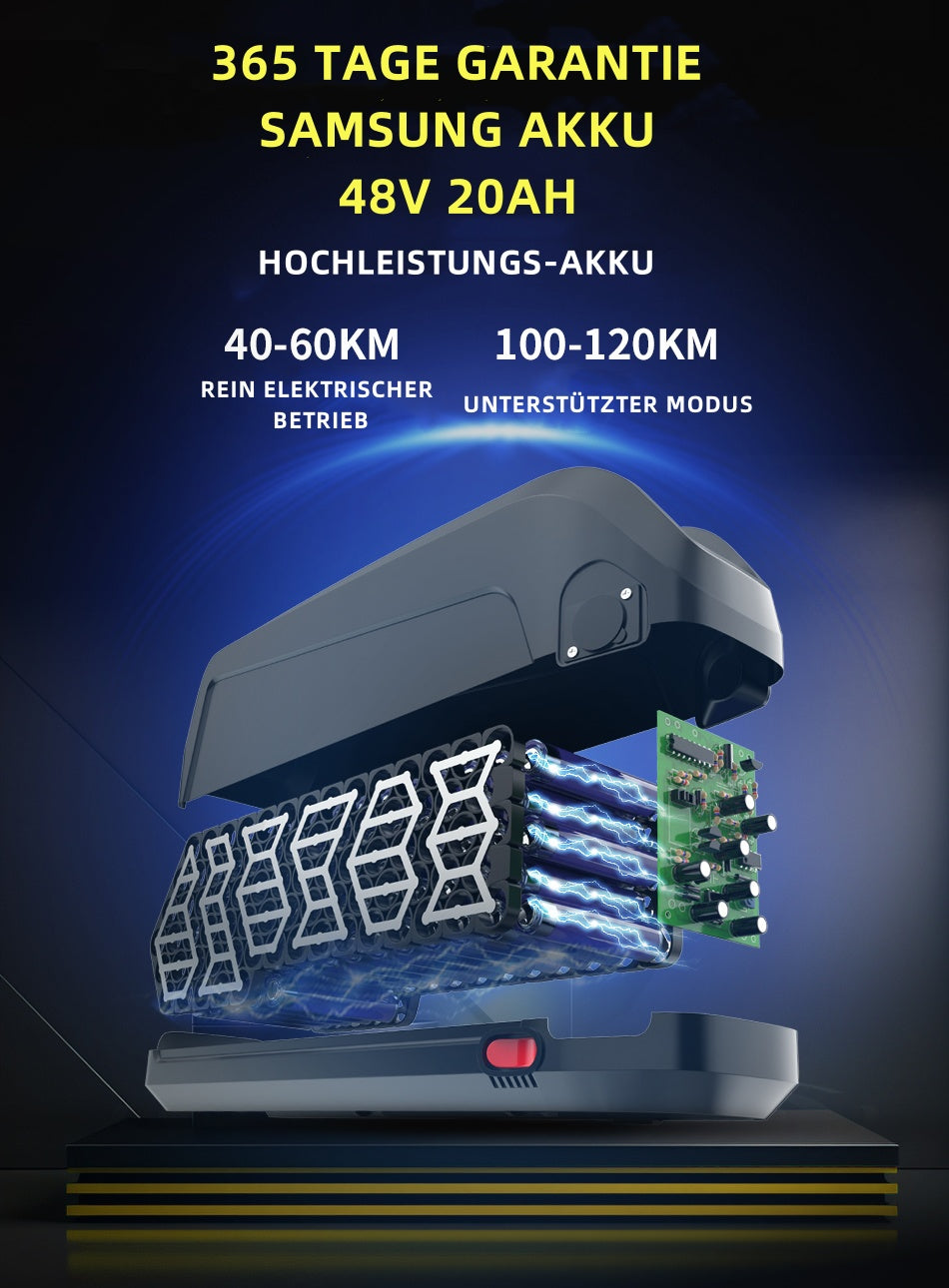 Der bürstenlose Hochgeschwindigkeits-Nabenmotor mit 750 W*2 und 130 Nm Drehmoment gibt Ihnen maximale Leistung und ist auf unwegsamem Gelände nicht zu stoppen. Wir bieten Ihnen ein noch nie dagewesenes Fahrvergnügen, das jede Fahrt leicht und komfortabel macht.