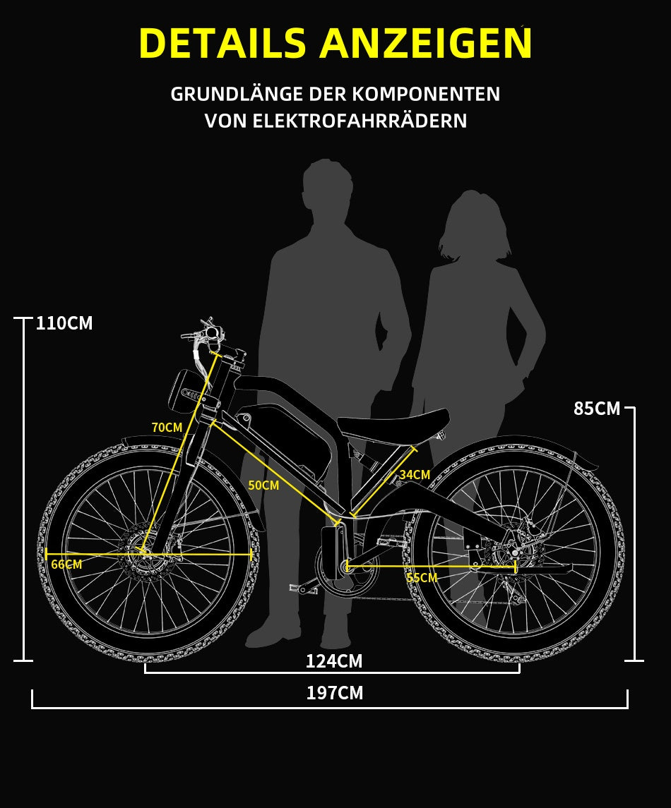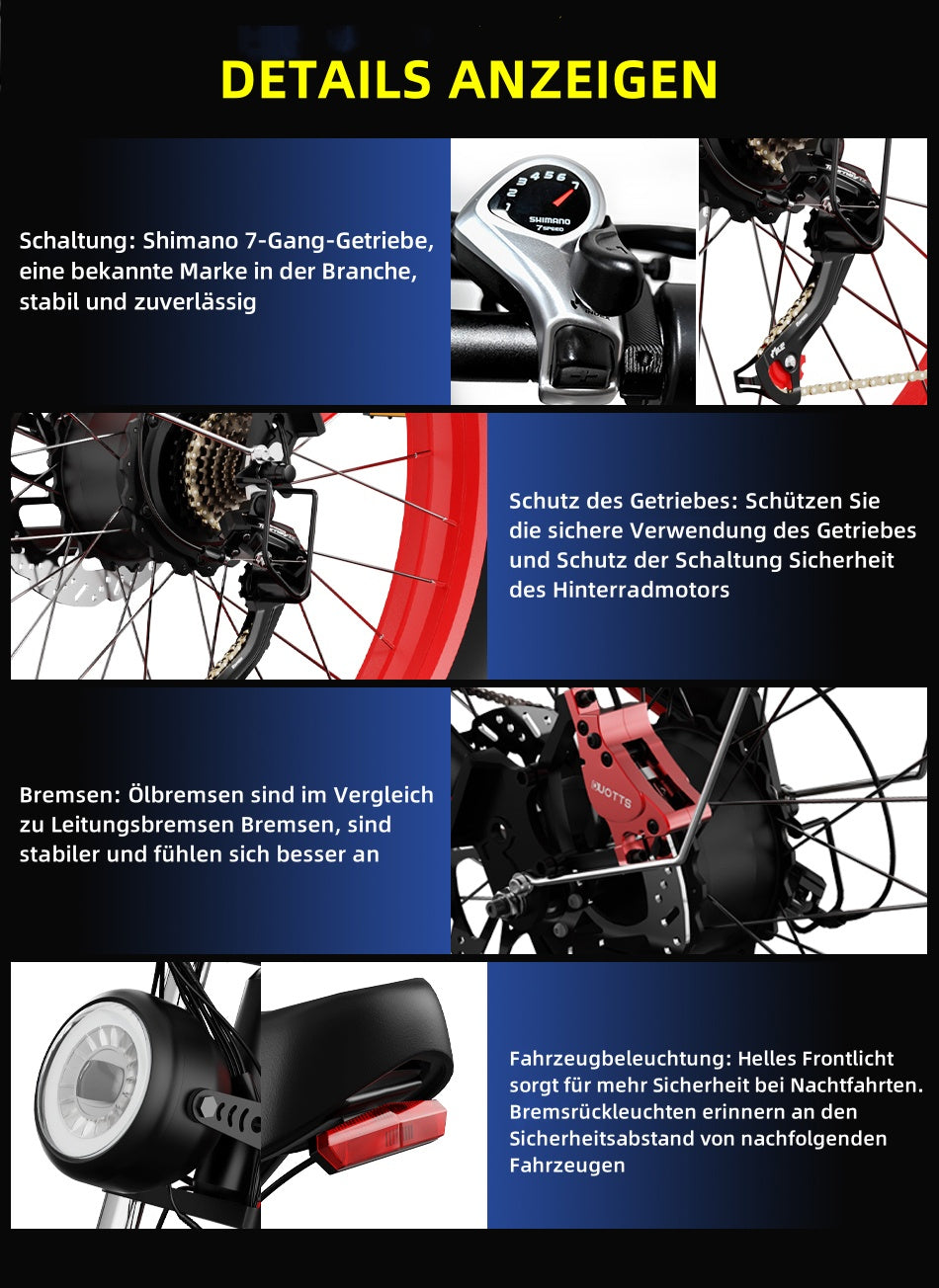 Das Aussehen des E-Bikes wird durch ein frisches, sportliches Motorraddesign und eine avantgardistische, moderne Ästhetik revolutioniert. Der neue Look dieses E-Bikes macht Sie zu einem modischen Mittelpunkt Ihrer Fahrt und bringt Ihre Persönlichkeit und Ihren Geschmack zum Ausdruck.