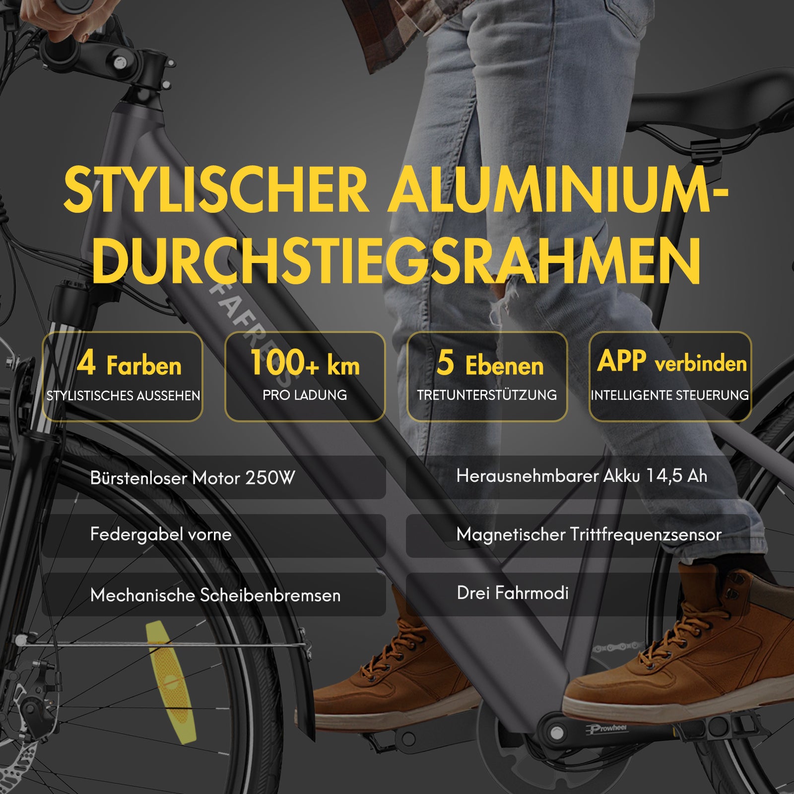 Elektrofahrrad FAFREES F28 Pro - 250W Motor 522WH Batterie 60KM Reichweite - Schwarz